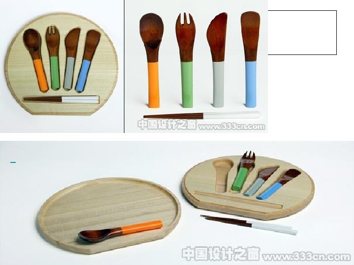 幼儿西餐餐具:把手短小圆润便于幼儿卧牢,餐具的尖 端部分趋向圆润,可以保证儿童的安全。 在式样上稚拙可爱,十分符合儿童的审美趣味。