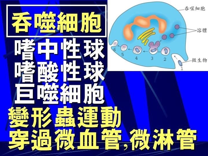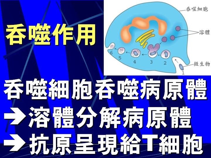 先天性免疫或非專一性免 疫 v 抗 v v 微 生 吞 自 v 發 的 噬 非 v 物 吞 然 炎 細 噬 殺 反 物 應 胞 細 手 與 質 胞 細 發 胞 燒