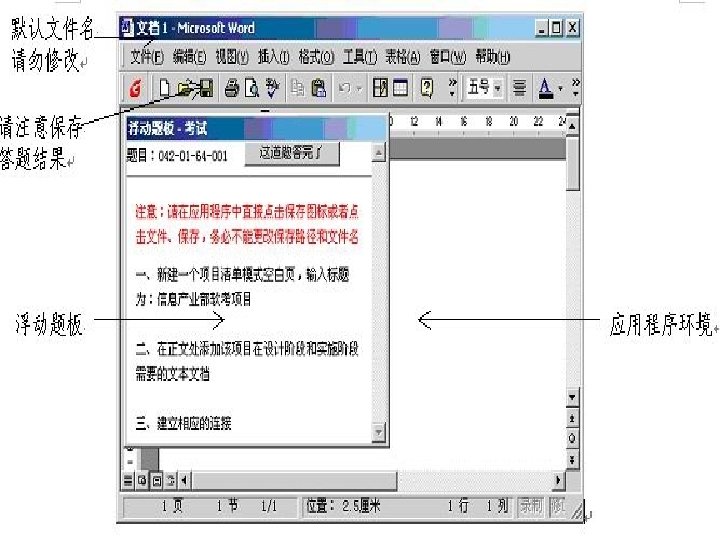 随时执行应 用程序的保 存操作 点击浮动题板“这 道题答完了”按钮, 结束本题作答,回 到完整试卷