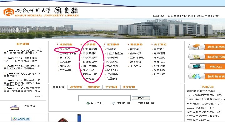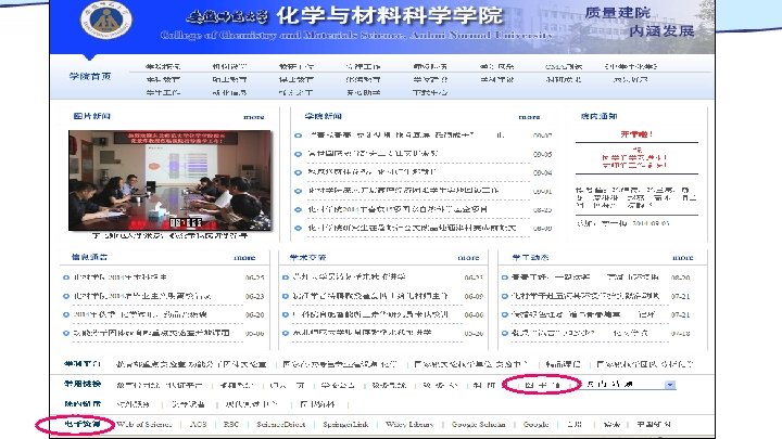 2. 6 我校电子资源 • 图书馆数据库资源的进入: • 网址:http: //lib. ahnu. edu. cn/ • 化学与材料科学学院主页 • 网址:http: //chem. ahnu. edu. cn/