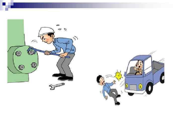 Характерные причины несчастных случаев. Наибольшее количество травм происходит при несоблюдении правил дорожного движения и требований техники безопасности проведении различных работ: • неправильная постановка транспортного средства на ремонт и техническое обслуживание (отсутствие башмаков, вывешивание автомобиля за буксирные крюки и т. п. ); • проведение шиномонтажных работ без предохранительных приспособлений (происходит вылет замочного кольца); • проведение работ повышенной опасности необученным, не аттестованным персоналом; • допуск к работам в электроустановке лиц, не имеющих на это право; • эксплуатация деревообрабатывающих станков без защитных кожухов и экранов, а также других предусмотренных предохранительных устройств; • эксплуатация неисправного транспортного средства, электрооборудования, инструмента;