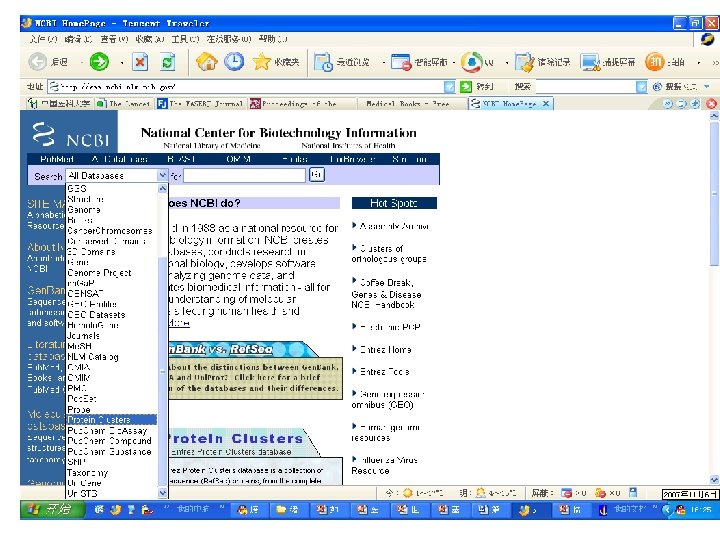 权威知识库 • Ex. PASy Proteomics Server http: //us. expasy. org/ • 蛋白质分析专家系统Ex. PASy(Expert Protein Analysis System)是瑞士生物信息 研究所(Swiss Institute of Bioinformatics, SIB)创建的蛋白质组学服务器,用于分析蛋 白质序列和结构以及2维聚丙烯酰胺凝胶电泳 (2 -D PAGE)。 • 该系统网站还提供一系列其它软件 具,如 蛋白质组学和序列分析 具、2 -D PAGE分 析 具、质谱分析 具等。