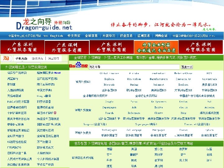 中国制造网创建月1998年,域名很有特色,上口,好记。汇集中 国企业产品,面向全球采购商,提供高效可靠的信息交流与贸易服 务平台。网站广告投放的力度并不大,在国内外主要靠口碑相传, 搜索引擎优化排名也不错。中国制造网的询盘无论从质量还是数量 上,都是可以称道的。 http: //www. made-in-china. com/