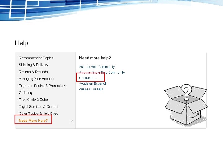 在线客服入口: 在任意商品页面或者个人信息页面的底 部有“Let Us Help You”一栏,点击最下 面的“Help”就可以进入“Help & Customer Service”帮助和客服页面: