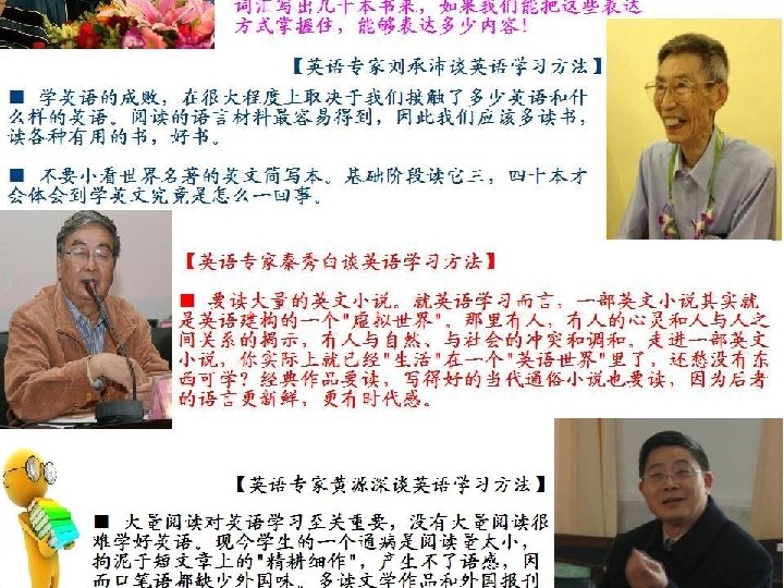 学生层面: 1. 学会自我分析。 2. 做过的题目,把正确答案填写在上面进行朗读, 对于一些经典考试真题, 新概念英语要进行背诵。 3. 积累一些常用词的生义。