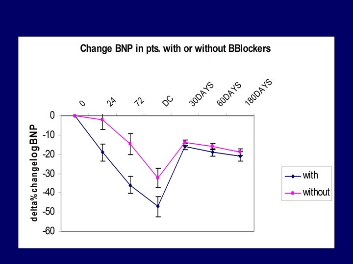 入院和出院前BNP值(pg/m. L) 和住院时间(天) BNP on admission BNP on discharge Length of stay 1200 12 1037 1000 10 729 pg/ml 800 6. 8 6. 9 8 6 600 481 398 4 400 2. 2 200 2 123 127 0 0 BNP 1 BNP < 250 pg/ml on clinical stability BNP 2 LOS BNP < 250 pg/ml after aggressive therapy BNP > 250 pg/ml