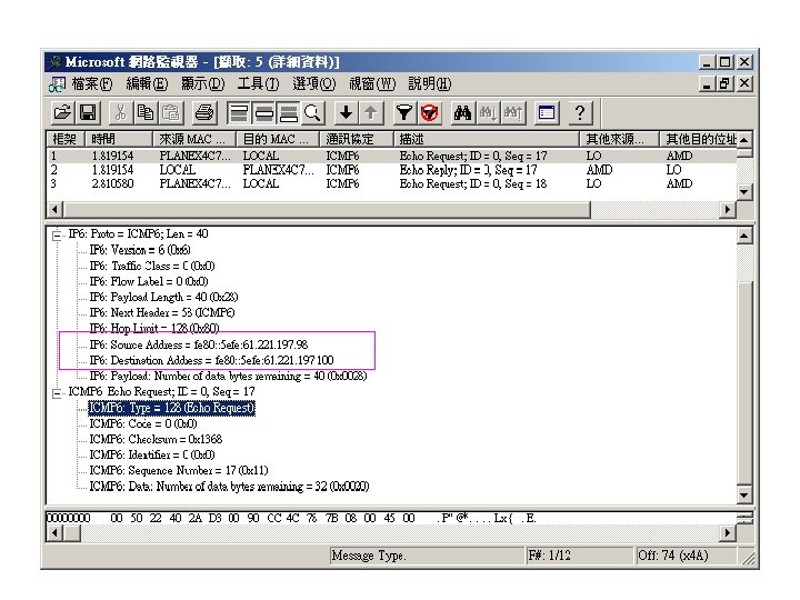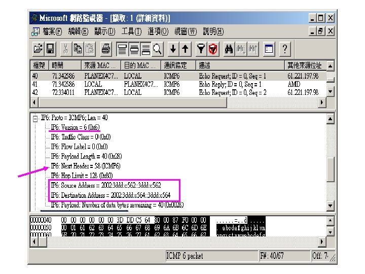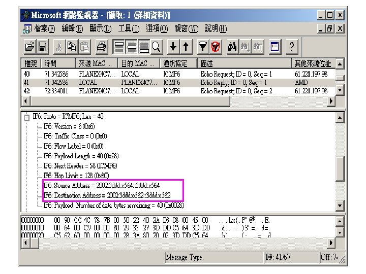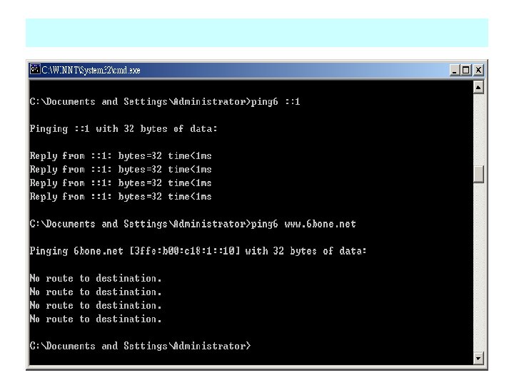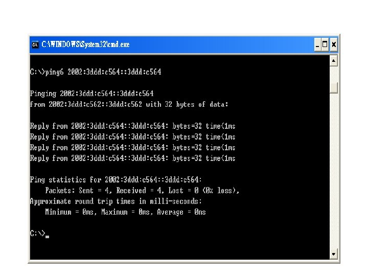 Simple test Window XP SP 1 IPv 4: : a. b. c. 98 • Window. NET server 2003 rc 2 • IPv 4: : a. b. c. 100 Network Monitor: : IPv 6 Ready Ethereal: : IPv 6 Ready