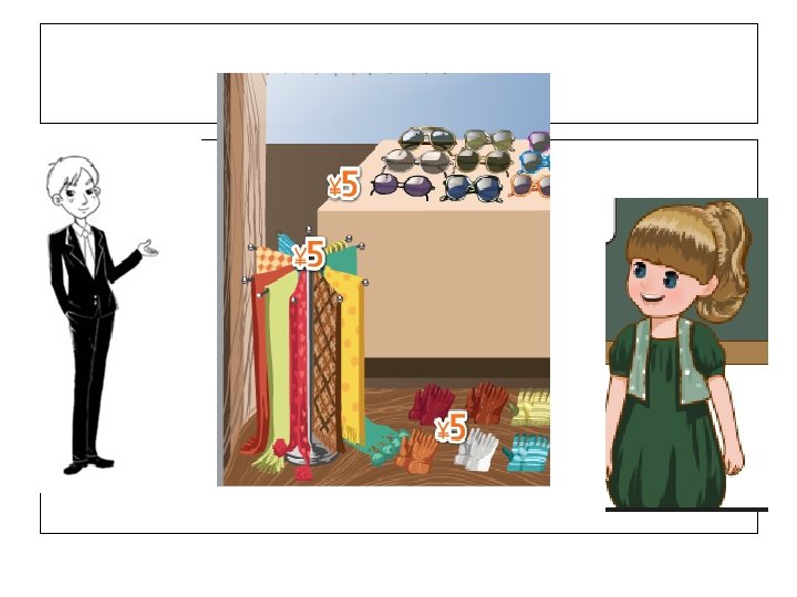 skirts ¥____ gloves sunglasses ¥____ ¥ 5 ¥____ On Sale socks umbrellas ¥ 5 ¥________ scarves ¥ 5 ¥____ shoes ¥____