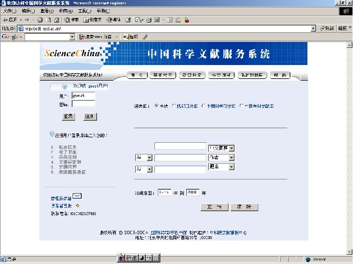 “服务百所行”系列讲座——光学与精 密机械信息资源与服务推介 光学与精密机械网络信息服务 ——中国科学文献服务系统 q Science. China-中国科学文献服务系统(1) 网址: Ø http: //Sciencechina. cn Ø http: //Sciencechina. net. cn Ø http: //Sciencechina. ac. cn Ø http: //sdb. csdl. ac. cn