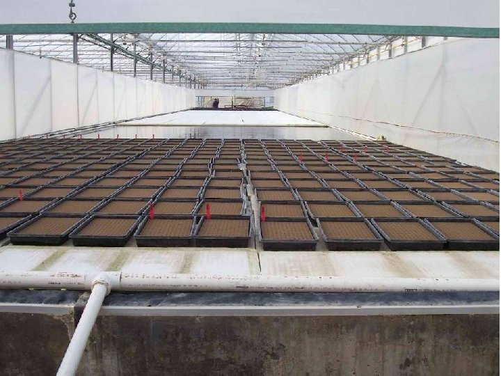 浮板栽培模式 • 三階段栽培 Cornell University, CEA center – 育苗期 (11 天 ) • 高密度 : 96 plants/board, 育苗室 – 生長期 (10 天 ) • 中密度 : 60 plants/board,溫室 – 成熟期 (14 天 ) • 低密度 : 20 plants/board,溫室 • 第 35 天收穫