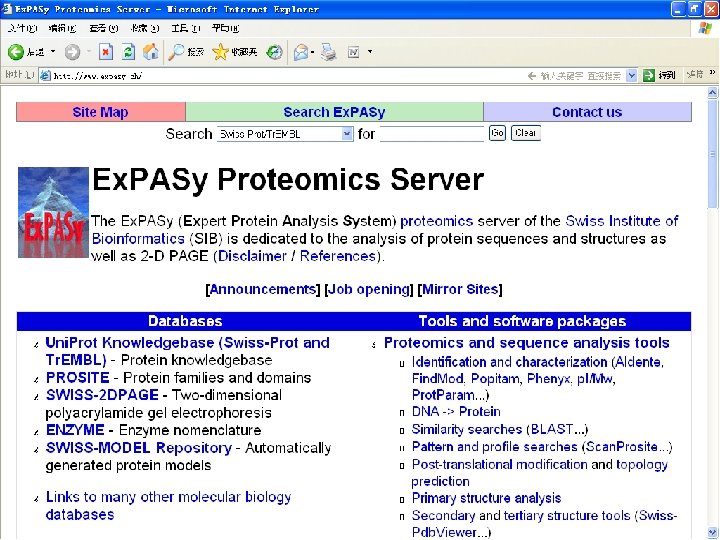 三、生物信息学数据库的检索 • Entrez • SRS • Ex. PASy Sequence Retrieval System