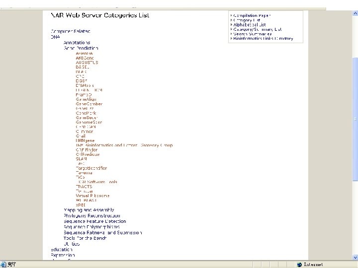 5. 生物信息学数据库的查找 • 查专业杂志: 从1994年开始,《核酸研究》( Nucleic Acids Research)每年第一期是生物信 息学数据库专集; 详细介绍最新版本的各种数据库。 • 从2000年开始,出版《核酸研究》的牛津大学 出版社设立了一个数据库目录(NAR Database Categories List )。 http: //www. oxfordjournals. org/nar/database/c/。 共 1176个数据库 • 查询著名的生物信息学中心 , 如NCBI、EBI。