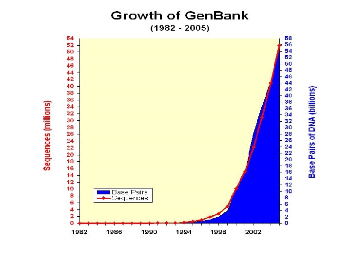 2. 序列数据总量 • 每 30个月翻一番。 • 收录了9200万条序列,950亿个碱基。 • 2008年,新增 1600多万条序列。