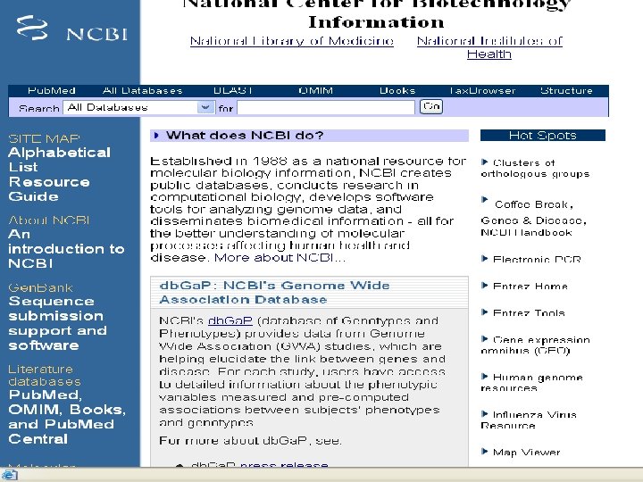 1、NCBI • National Center for Biotechnology Information (NCBI) • Established in 1988 as a national resource for molecular biology information, • www. ncbi. nlm. nih. gov