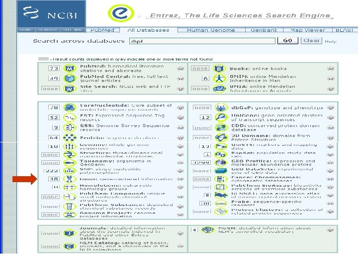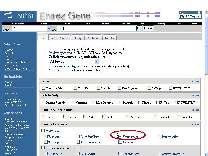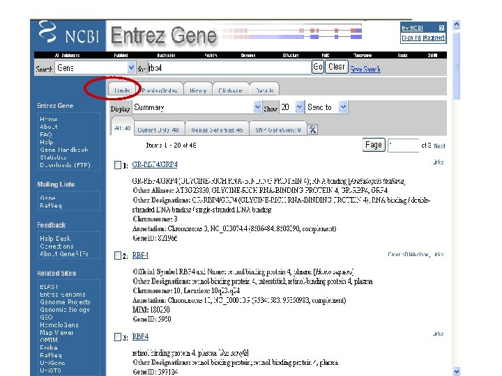 From the NCBI home page, type “rbp 4” and hit “Go”