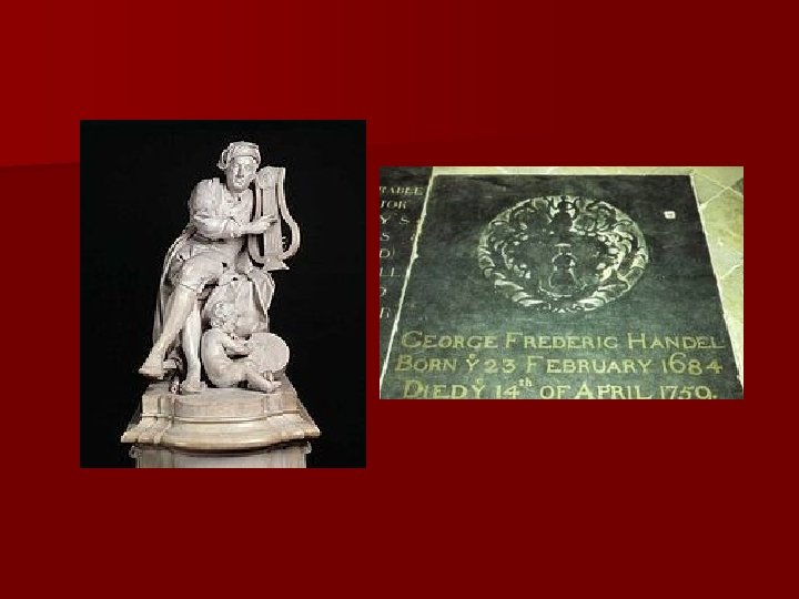 n 1685 --2月23日出生於德國 Halle n 1702 --入Halle大學攻讀法律,並擔任 Halle 主教教堂的風琴手,並完成了第一 首教會音樂"讚主曲 n 1705 --完成了第一部歌劇 「Almira」並前 往義大利。 n 1711 --初次訪問倫敦,歌劇 「 Rinaldo」在 倫敦上演。 n 1715 --完成「水上音樂組曲」。 n 1721 --定居倫敦 Brook street。
