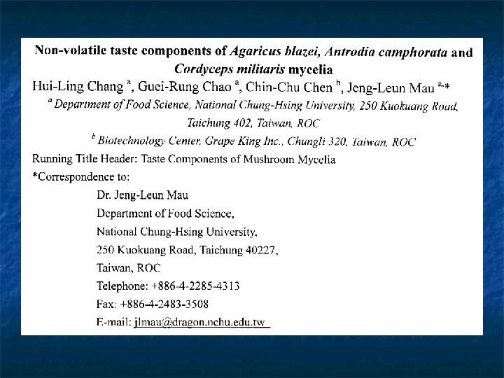 99年「興大之光」 Apr 2010 - Emerging Research Fronts: Jeng-Leun Mau and Colleagues on Antioxidant Properties in Three Tasty Mycelia 9