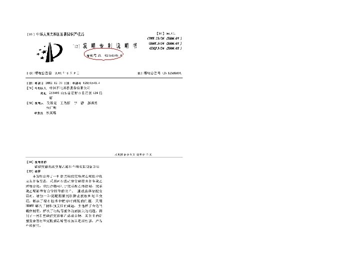 Full Bibliographic record of a Chinese Patent