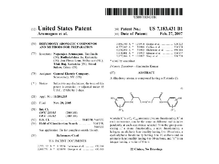 Why Search for Patents? • Patentability Search – Find out whether an invention is patentable • Infringement Search – Determine if the claims of a patent infringe any other patent • Assignment Search – Determine the present owner of a patent – Identify competitors/contacts for new technology • Patents as an Information Source – Review patents in a particular technical area (synthesis of a patented compound) – Point out new directions in research – Find new uses for existing technologies