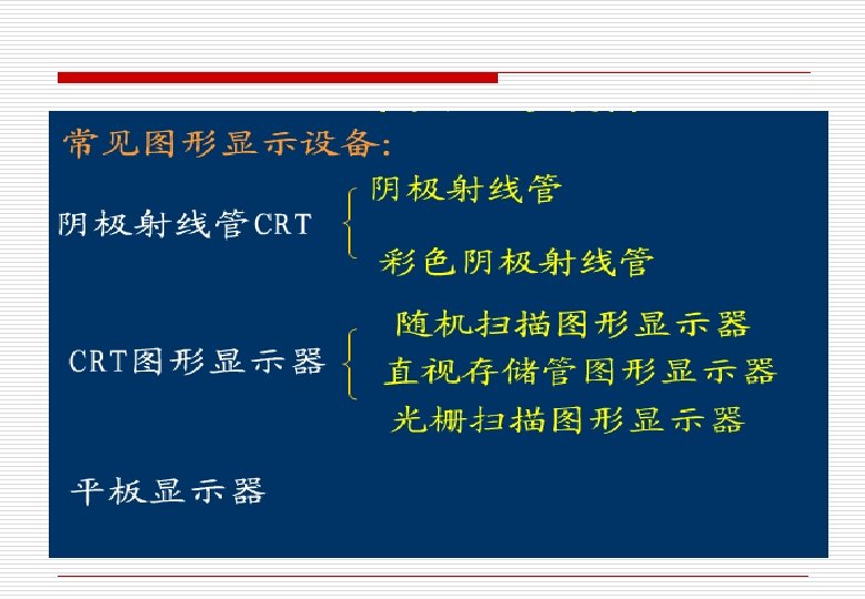 2. 2:图形显示设备 o 阴极射线管 o 彩色阴极射线管 o CRT图形显示器 本节内容: o 平板显示器三维 观察设备