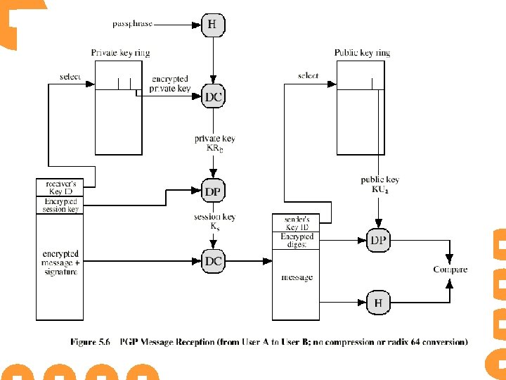 密钥环(Key Rings) ® Key. ID在PGP中标识所使用的发送者和接收者 的密钥号 两个key. ID包含在任何PGP消息中提供保密与认证 功能 需要一种系统化的方法存储和组织这些key以保证 使用 ® PGP在每一个节点上提供一对数据结构 存储该节点拥有的公钥/私钥对私钥环 存储本节点知道的其他用户的公钥环