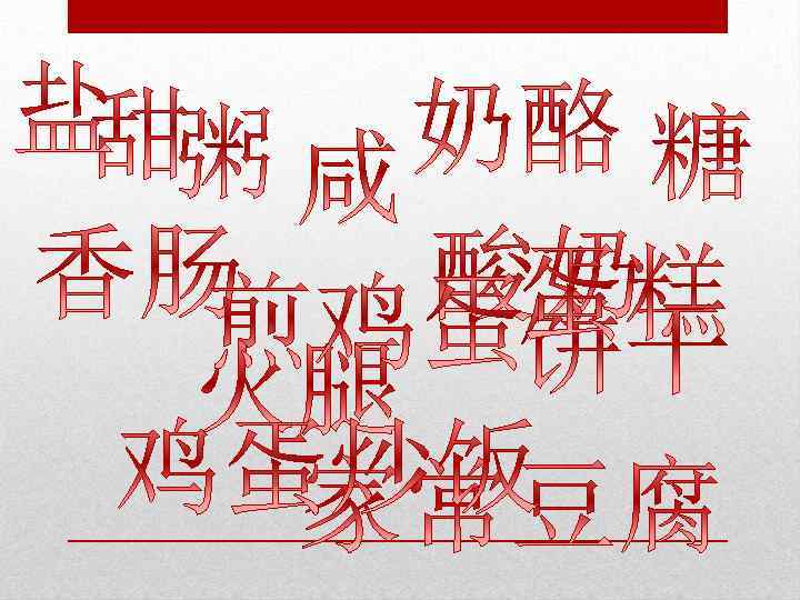 “南甜北咸,东辣西酸” 甜 tián 咸 xián 辣 là suān 酸