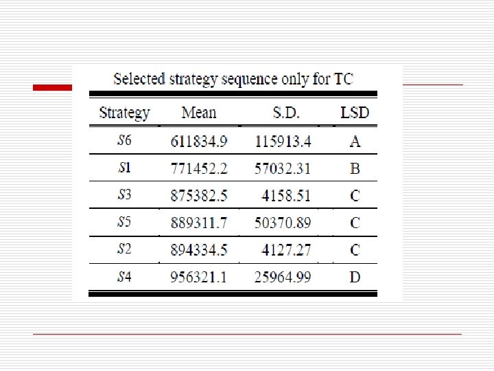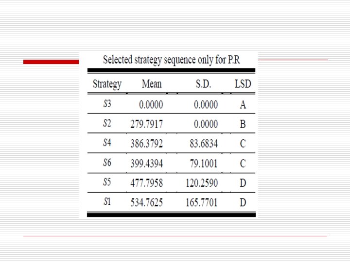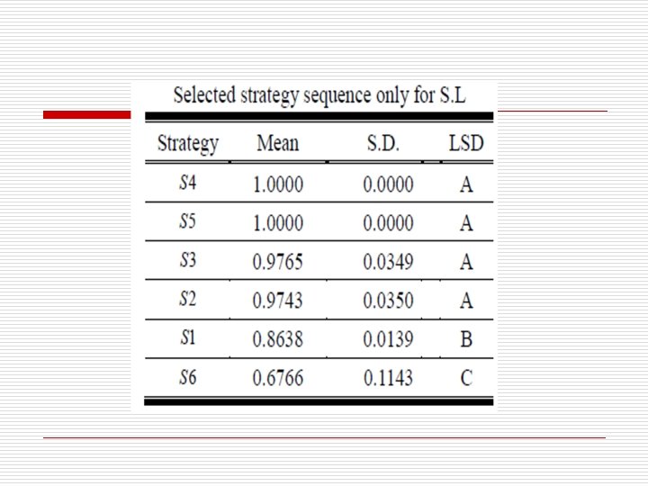 Conclusion-2 o With the special case for the comparison of the results of ANOVA for single objective and the results of TOPSIS for “the consideration of multiple objectives in which only one objective is especially important”, it shows that there are some differences in the selecting sequence for APP strategies. The reason lies in that ANOCA is assumed as the type I error, while TOPSIS is not.