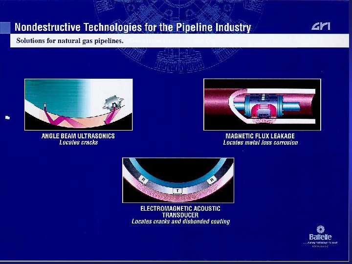Background n Situation Gas pipelines of Korea have been constructed since 1980’s Main transportation line(KOGAS): 1, 482 km Urban gas pipelines: 12, 097 km Regulatory demand for inspection and replacement of underground pipelines aged over 15 years Enormous budget for pipeline inspection, replacement and repair n Remedies F Adequate NDE equipment and instrumentation F Life assessment technology F Regulation and law for integrity evaluation F Systematic maintenance program for gas supplier