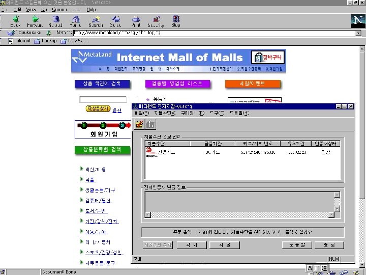 주문정보와 지불정보의 분리 1. 상품정보 2. 주문정보 고객 Web Browser 인증서 인증 기관 상인 상품 SSL 인증서 5. 결제통보 3. 지불정보 대금 금융 기관 TTF / Host on-line off-line 인증서 대금 4. 대금(이체) 상인 은행 SSL (128 bits) SDT 정의 암호화 기존 은행망