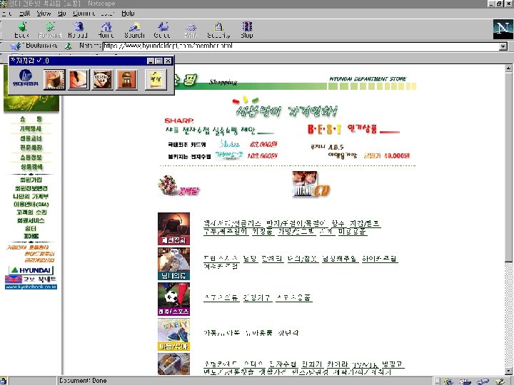 충전형 전자현금 시스템 구조 1. 상품정보 2. 주문정보 고객 Web Browser 상품 5. 결제통보 3. 지불정보 대금충전 on-line off-line 상인 대금 전자 상인 현금 4. 대금(이체) 은행 서버 SSL (128 bits) SDT 정의 암호화 기존 은행망