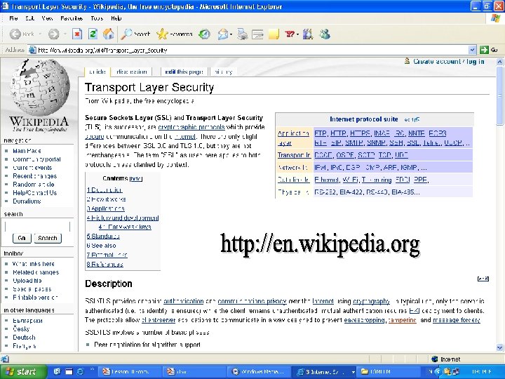 Applications n SSL runs on layers beneath application protocols such as HTTP, SMTP and NNTP and above the TCP transport protocol, which forms part of the TCP/IP protocol suite. While it can add security to any protocol that uses TCP, it is most commonly used with HTTP to form HTTPS is used to secure World Wide Web pages for applications such as Electronic commerce. It uses public key certificates to verify the identity of endpoints. n While an increasing number of client and server products can support SSL natively, many still do not. In these cases, a user may wish to use standalone SSL products like Stunnel to provide encryption. n SSL can also be used to tunnel an entire network stack to create a VPN, as is the case with Open. VPN.