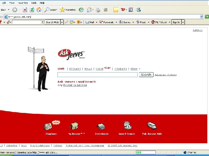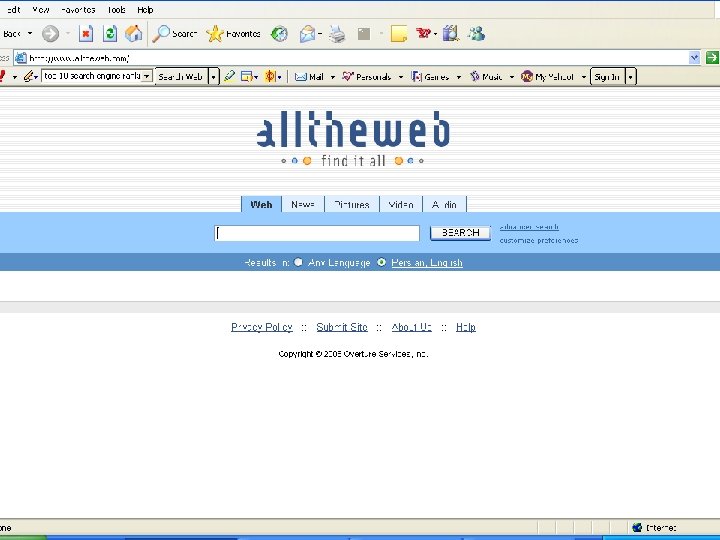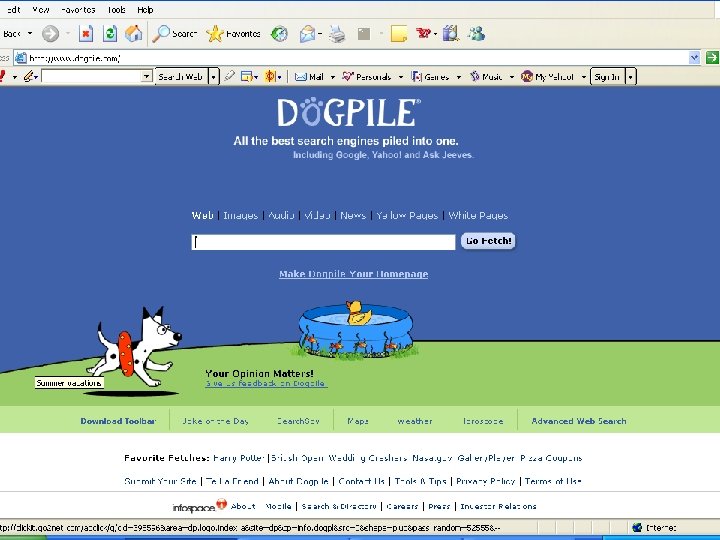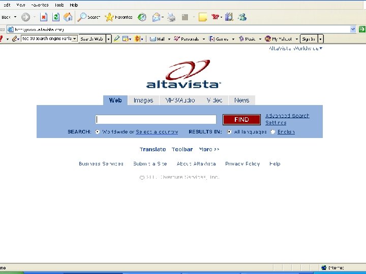 Search Engine: Alta Vista www. altavista. com AOL www. aol. com ASKJEEVES www. askjeeves. com Directhit www. directhit. com Dogpile www. dogpile. com
