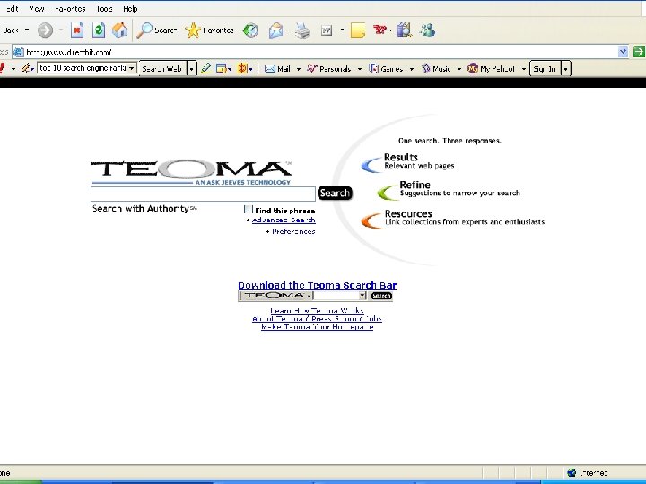 Lycos www. lycos. com Msn www. msn. com Mamma WWW. Mamma/com NBCi www. nbci. com Netscape www. netscape. com Northern Light www. northernligth. com Proquest www. proquest. Com UMI www. umi. com