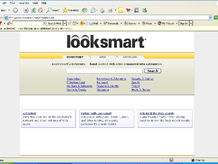 Excite www. excite. com Fastsearch www. alltheweb. com Google www. Google. com Go. To www. goto. com Hot. Bot www. hotbot. com Infoseek www. infoseek. com Iwon www. iwon. com Look. Smart www. looksmart. com