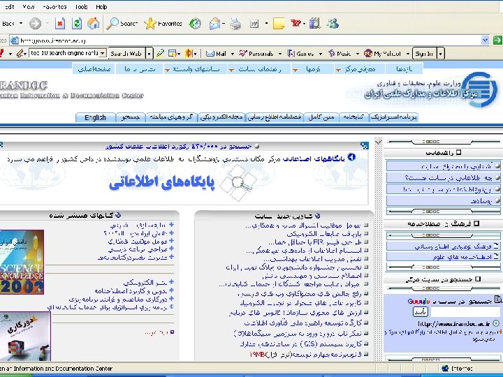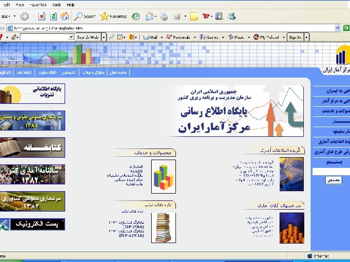 Net Iran www. netiran. com ﻭﺯﺍﺭﺕ ﺑﺎﺯﺭگﺎﻧی www. irancommerce. com Neda net www. Nedanet. com ﺳﺎﺯﻣﺎﻥ آﻤﺎﺭ ﺍیﺮﺍﻥ www. sci. org. ir ﺑﻮﺭﺱ ﺍﻭﺭﺍﻕ ﺑﻬﺎﺩﺍﺭ ﺗﻬﺮﺍﻥ www. tse. ir ﺷﻬﺮک ﻋﻠﻤی ﺗﺤﻘﻴﻘﺎﺗی ﺍﺻﻔﻬﺎﻥ www. istt. org