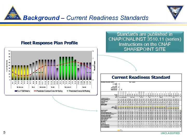 Background – Current Readiness Standards Fleet Response Plan Profile Standards are published in CNAP/CNALINST 3510. 11 (series) Instructions on the CNAF SHAREPOINT SITE Current Readiness Standard 5 UNCLASSIFIED
