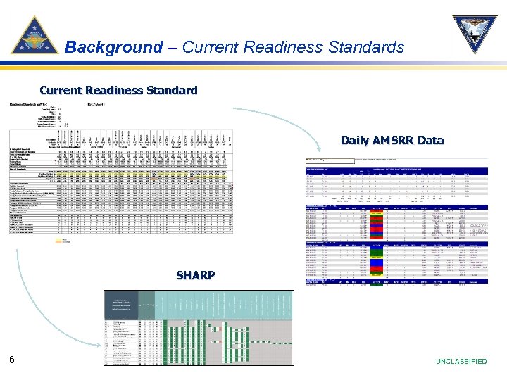 Background – Current Readiness Standards Current Readiness Standard Daily AMSRR Data SHARP 6 UNCLASSIFIED