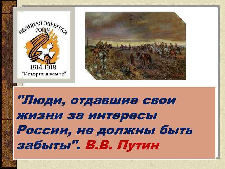 "Люди, отдавшие свои жизни за интересы России, не должны быть забыты". В. В. Путин