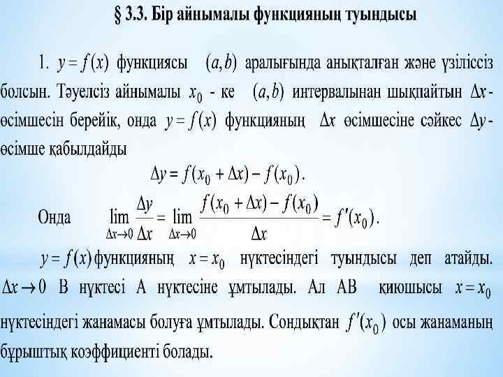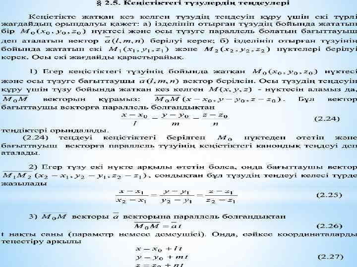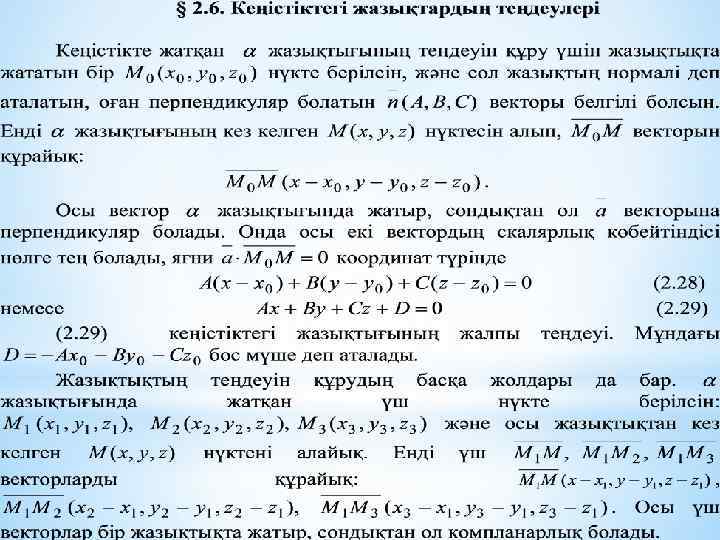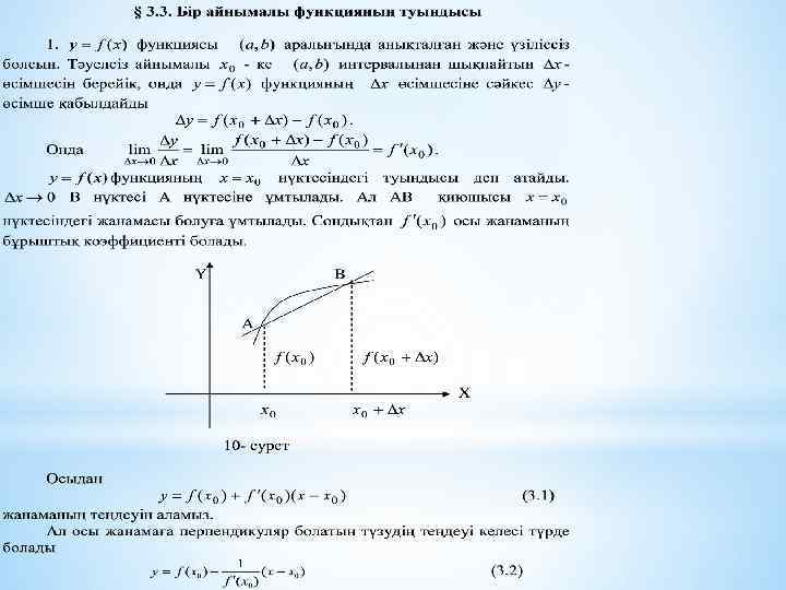 § 2. 2. Жазықтықтағы түзу сызықтың теңдеулері 1. Бұрыштық коэффициентігі бар түзудің теңдеуі. 4 - сурет 2. Бір нүкте арқылы берілген бағытта өтетін түзудің теңдеуі. Түзу сызықта жататын нүкте берілсін және түзу сызықтың ОХ осімен көлбеу бұрышы -га тең болсын, онда осы нүкте арқылы және бүрыштық коэффициенті тең болатын түзу сызықтың теңдеуі мына түрінде жазылады
