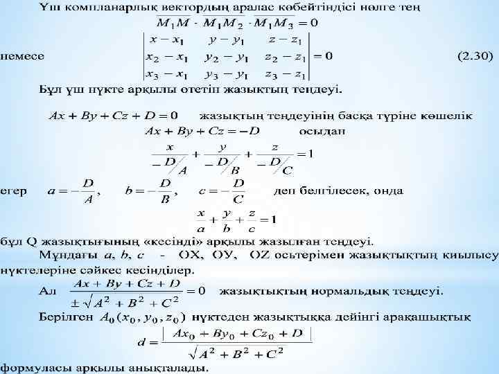 3. Екі нүкте арқылы өтетін түзу сызықтың теңдеуі екі нүкте арқылы өтетін түзудің теңдеуі шығады. 4. Жазықтықтағы екі түзудің арасындағы бұрыш. Параллельдік және перпендикулярлық шарттары. Жазықтықта жатқан бұрыштық коэффициенті бар екі түзудің теңдеулері берілсін (2. 9) формуласы екі түзу арасындағы бұрышты анықтайтын формула. Егер екі түзу өзара параллель болса, онда не болмаса (2. 10) Бұл теңдік екі түзудің параллельдік шарты.