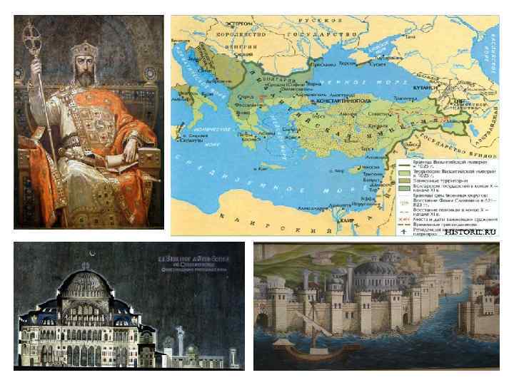 Мало того, князь Владимир Святославович (на иллюстрации внизу справа) перед крещением захватил византийскую крепость Херсонес (на иллюстрации внизу слева) и получил себе в жены сестру императора Византии (ранее никогда варварам в жены принцесс Византии не отдавали). Поэтому Древняя Русь приняла крещение от Византии на почетных условиях.