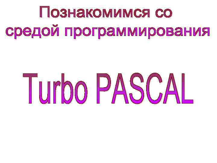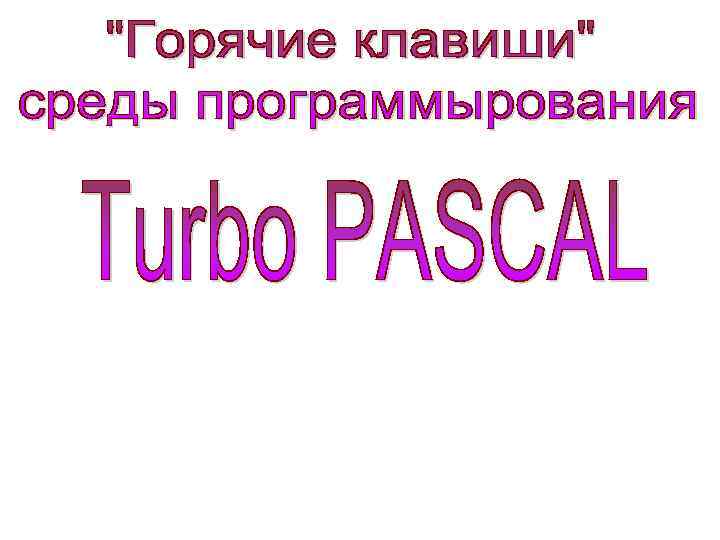 F 10 Вход в главное меню Ctrl+F 9 Запуск программы на выполнение F 3 Открыть файл с текстом программы At+ Х Выход из PASCAL Просмотр результата работы Alt+F 5 программы Ctrl+ Прерывание исполнения программы Break Esc Закрытие диалогового окна или окна меню Alt+ Переход в окно редактирования с цифра таким номером (от 1 до 9)