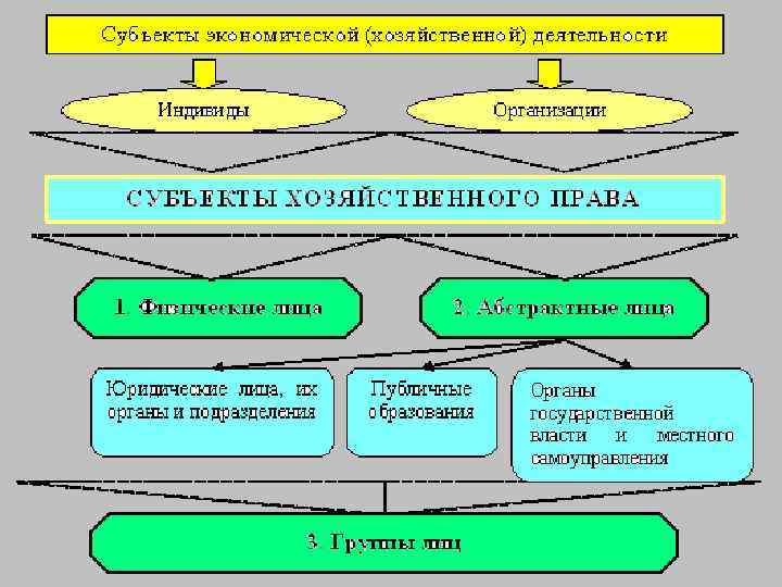- это: 1) физические лица, 2) абстрактные лица – юридические лица (их органы и подразделения), публичные образования и их органы, которые могут иметь права и нести обязанности, необходимые для осуществления предпринимательской и иной хозяйственной деятельности, а также 3) группы лиц – объединения физических лиц и (или) абстрактных лиц, не наделенные статусом юридического лица, но обладающие частичной правосубъектностью, участники которых могут иметь права и нести обязанности, необходимые для осуществления такими объединениями предпринимательской и иной хозяйственной деятельности