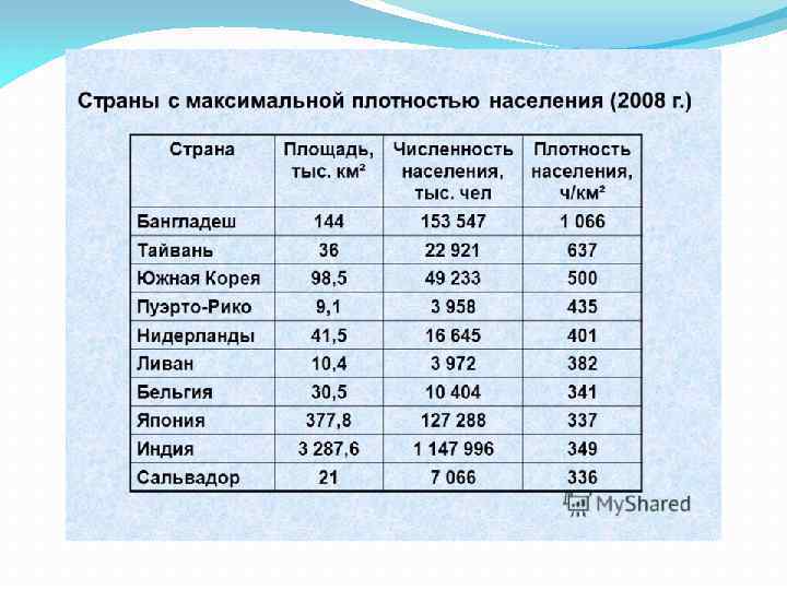 Динамика численности населения городов РФ Год Численность населения в городах с числом жителей, тыс. человек До 10 10 -19, 9 20 -49, 9 50 -99, 9 100 -499, 9 500 -999, 9 1000 и всего 1959 1012 3548 9199 6721 15459 8279 7946 52164 1970 841 3818 10884 7908 23316 8375 14856 69998 1991 710 3700 11800 11300 28900 13300 26300 96010 1995 728 3879 11955 11993 29301 13106 24322 95284 2000 783 4078 11705 11855 28240 13487 24556 94704 2013 354 3875 10964 11987 29568 13588 38745 109081