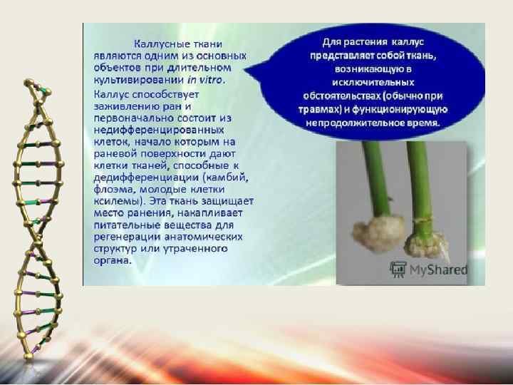 Для образования каллусной ткани in vitro клетки экспланта должны дедифференцироваться, т. е. утратить специфические характеристики исходной ткани.