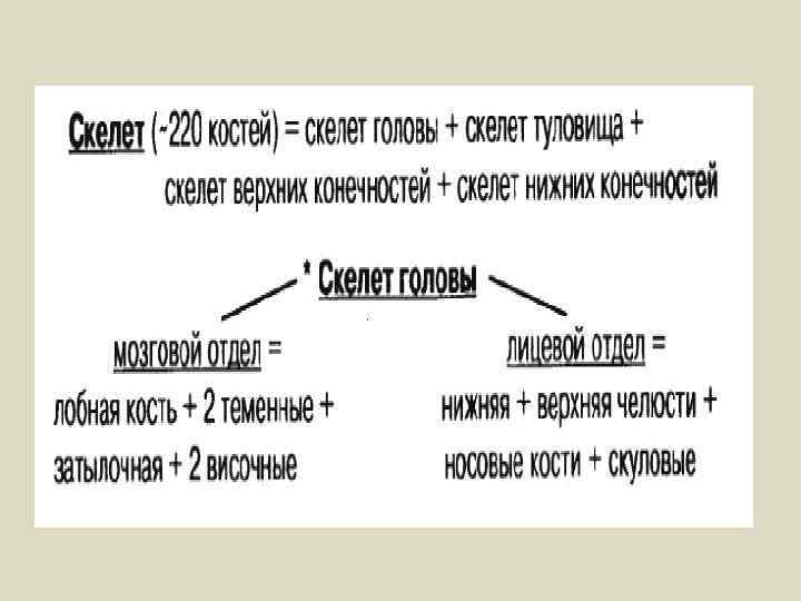 Вопросы ко второму фильму: 1 Какое количество костей насчитывает скелет человека? В скелете взрослого или ребенка костей больше? 2 Перечислите части скелета и укажите функции.