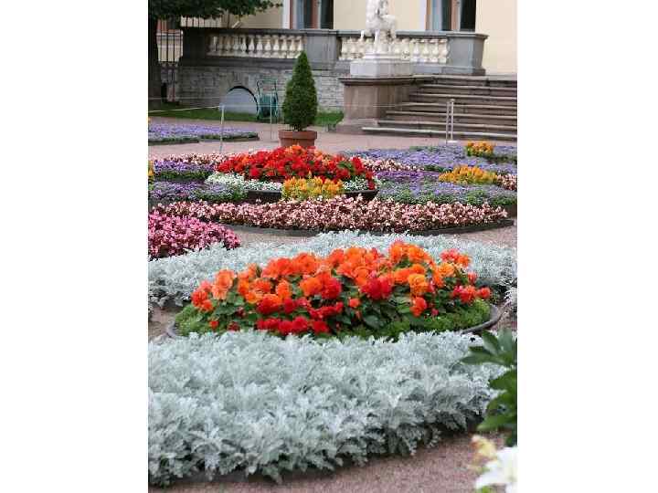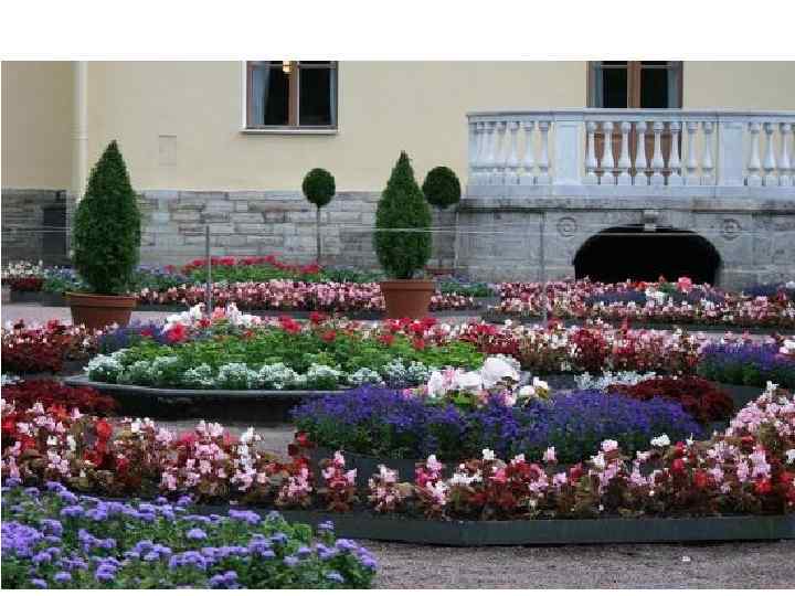 Анализ цветочной композиции: В цветочном партере представлено гармоничное сочетание, как цветов, так и их оттенков. Характерная для Санкт-Петербурга сине-голубая гамма, из агератума мексиканского F 1 «Atlantic improved» и лобелии компактной “Crystal Palace”, обеспечивает совершенную цветовую гармонию фона цветника. Холодный цвет зрительно удаляет объект и придает ему объем. Разные виды цветочных растений высажены концентрическими кругами – на переднем плане агератум, и бело-розовая цветовая гамма бегонии дает мягкий переход к ярко синей лобелии компактной. В свою очередь лобелия, как ключевая культура обеспечивает контрастный фон для махровой бегонии клубневой F 1 “Go-Go”. В центре композиции партера высажена пеларгония зональная F 1 "Elite", которая возвышается яркой ажурной доминантой, поданной зрителю «подбивкой» из алиссума компактного сорта "Minimum". Современное семеноводство представляет ландшафтному дизайнеру и садовнику бесконечное разнообразие семян садовых цветов для творчества по созданию садовопарковых цветников и вертикального озеленения в кашпо и подвесных ящиках.