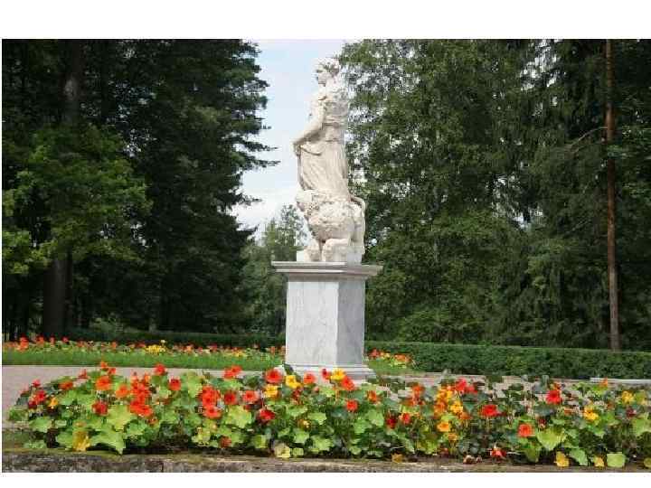 Терасса. Цветники. Цветочное оформление скульптуры «Мир» (Скульптор Баратта) 2007 г. Ассортимент цветочных культур: Настурция майская "Gleam Hybrids" (смесь, махровые цветы)