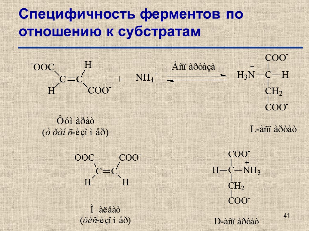 41 Специфичность ферментов по отношению к субстратам