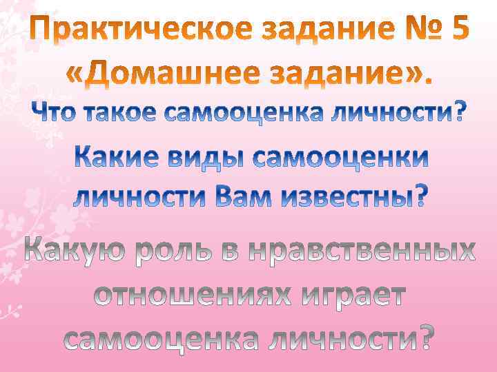 1. Чем различаются мораль и нравственность? 2. Перечислить основные этапы формирования нравственных характеристик личности, соблюдая логическую последовательность. 3. Что принято понимать под нравственными ценностями? 4. Какую роль в жизни человека играют нравственные ценности? Подтвердите свои слова крылатыми фразами, которые Вы приготовили к уроку.